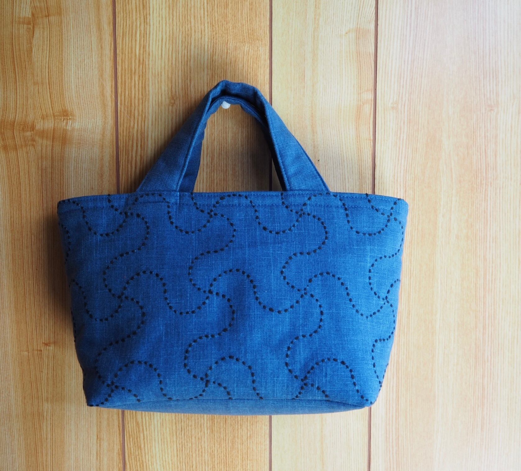 刺し子手提げかばん(チドリ) クロシロ