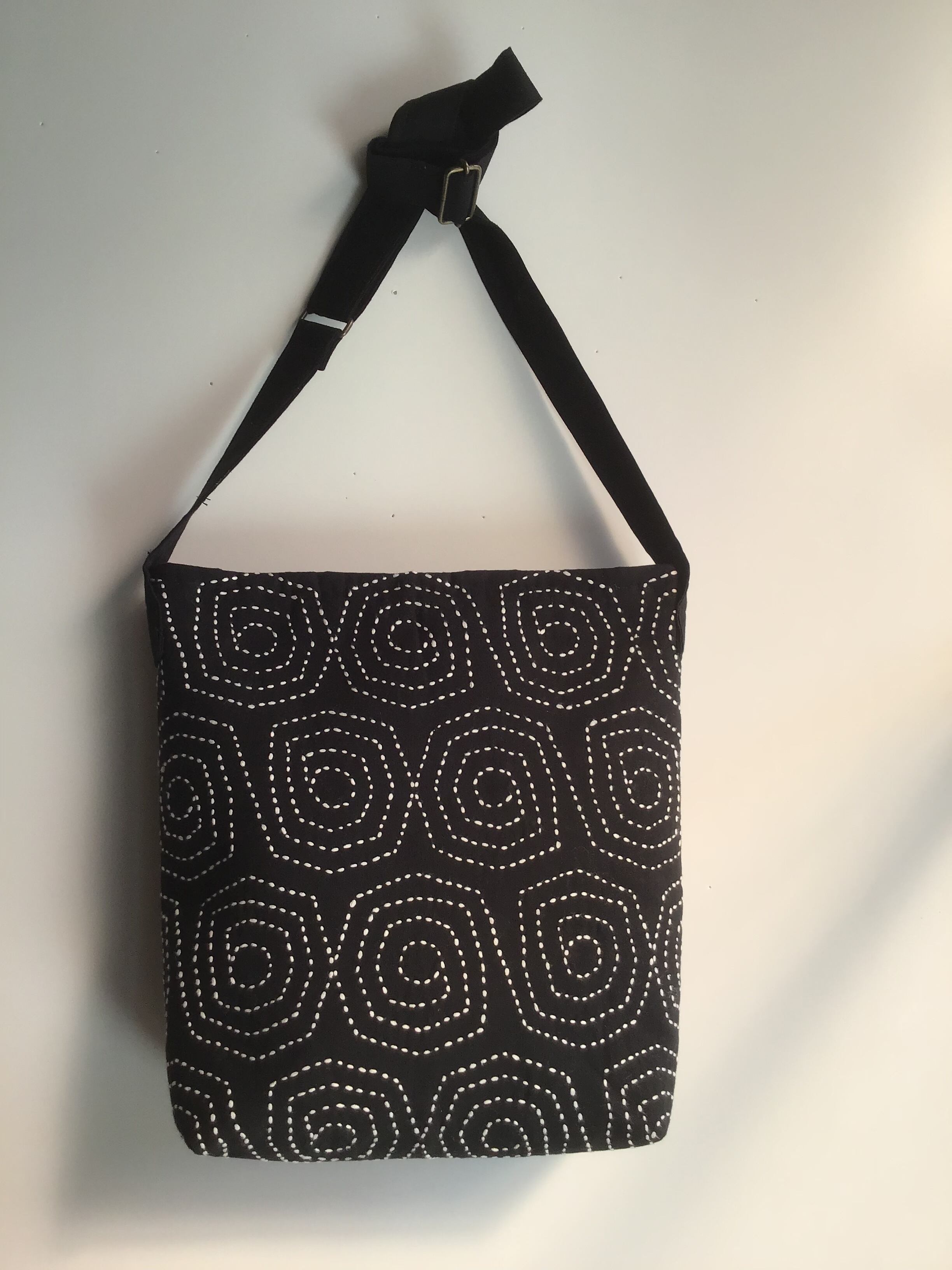刺し子ショルダーバッグ クロ( うずまき)