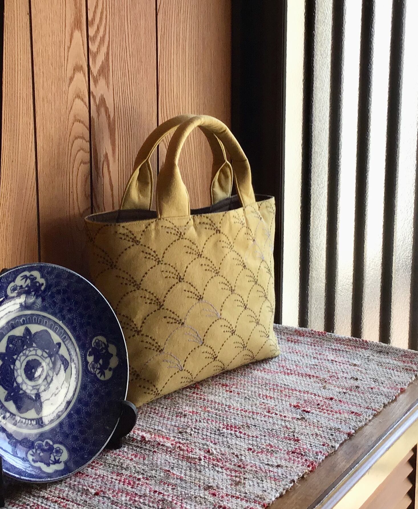 【刺し子】手提げバッグ(野分)